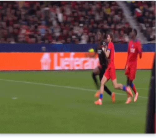 勒沃库森2-7惨败给巴黎一役,双方都有直接红牌。第33分钟,安德里希肘击杜埃,药厂10人作战;