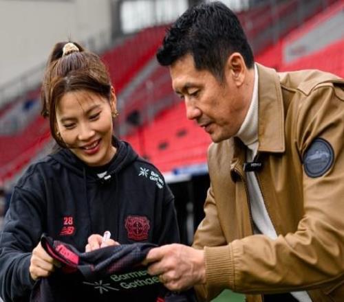 昨天,德甲首位中国球员杨晨到访勒沃库森主场拜耳竞技场,由我队女足球员沈梦露接待并陪同参观。