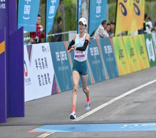 郑小倩在赛事中刷新个人PB,成为国内女子组第一名。澎湃新闻记者 朱伟辉 摄