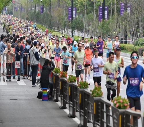 此次进行微调的赛道以及细致的保障服务,都受到跑者好评。 澎湃新闻记者 朱伟辉 摄