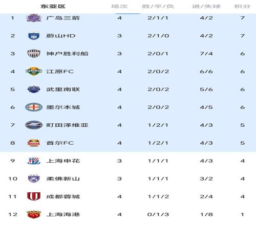 随着蓉城00,海港02,亚冠最新积分榜:中超2强沦为倒数前二名