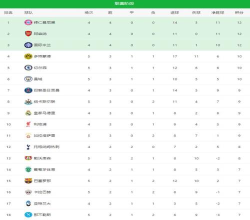 随着切尔西30巴萨,曼城02翻车,多特40,欧冠最新积分榜出炉
