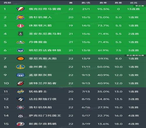 卫冕冠军雷霆的位置不可撼动,近期豪取13连胜,以21胜1负稳居第一,已经领先了身后的对手至少5个胜场,上赛季的雷霆在82场常规赛中拿到了68场胜利,仅仅输掉14场,按照目前的势头雷霆有机会把输球场次停留在个位数。湖人今天没有比赛,以15胜5负暂列第二名,但是只领先火箭、马刺和掘金0.5个胜场,稍微不注意,排名就会下滑,明天对阵太阳,东契奇因为个人原因缺席,考验湖人的时候到了。
