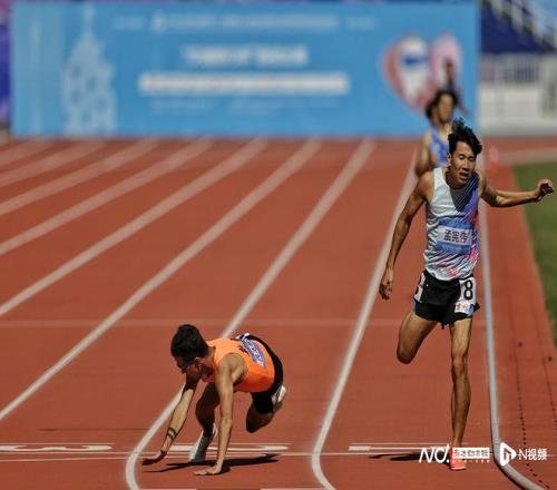 女子400米T47级决赛,当天恰好过生日的河南选手李露庆祝夺冠。
