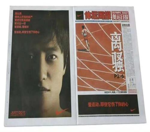 2008年北京奥运会的官方赞助商是阿迪达斯(又是阿迪……),赞助费高达13亿人民币(1.6亿美元)。在那届奥运会期间,NIKE 根据中国奥运健儿的表现在隔天的《体坛周报》上会发布相应的广告,例如“对手越强大,胜利越伟大”。