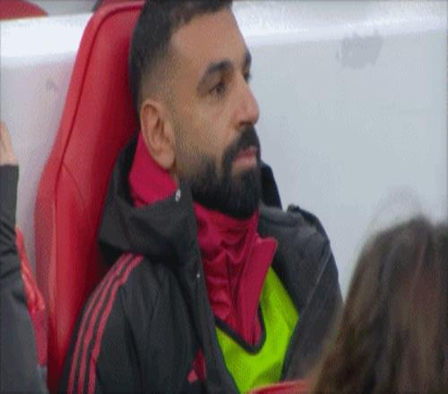 第15分钟,利物浦一球领先,镜头多次找到替补席的萨拉赫