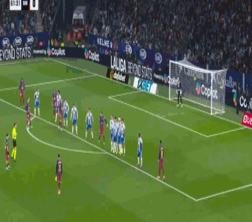 第28分钟,亚马尔转身兜射,皮球稍稍偏出