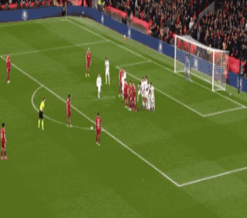 第50分钟,萨拉赫的突破制造了前场任意球,埃及法老亲自操刀,一记完美的弧线,打出世界波。