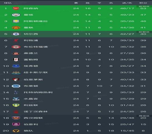 英超第24轮结束了所有比赛,最新积分榜如下!