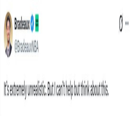 火箭媒体人Bradeaux也晒出哈登与杜兰特身穿火箭队球衣的P图,同时配文道:“我知道这不太现实,但还是忍不住去想。”