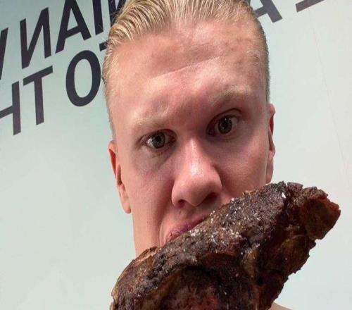 快速补充能量,哈兰德晒自己赛后吃烤羊排照片
